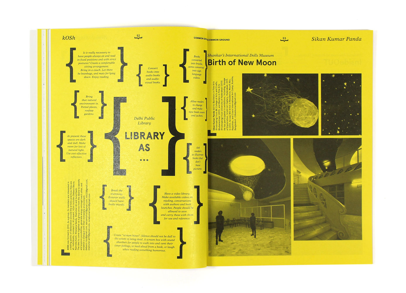 Design for the art exhibition INSERT 2014 in New Delhi in Jan/Feb 2014. Various Posters, leaflets, website as well as a publication with a cover with various sized stickers in the shape of brackets, taking them off, every user can create their own cover design in terms of the white spaces left when a sticker is gone.