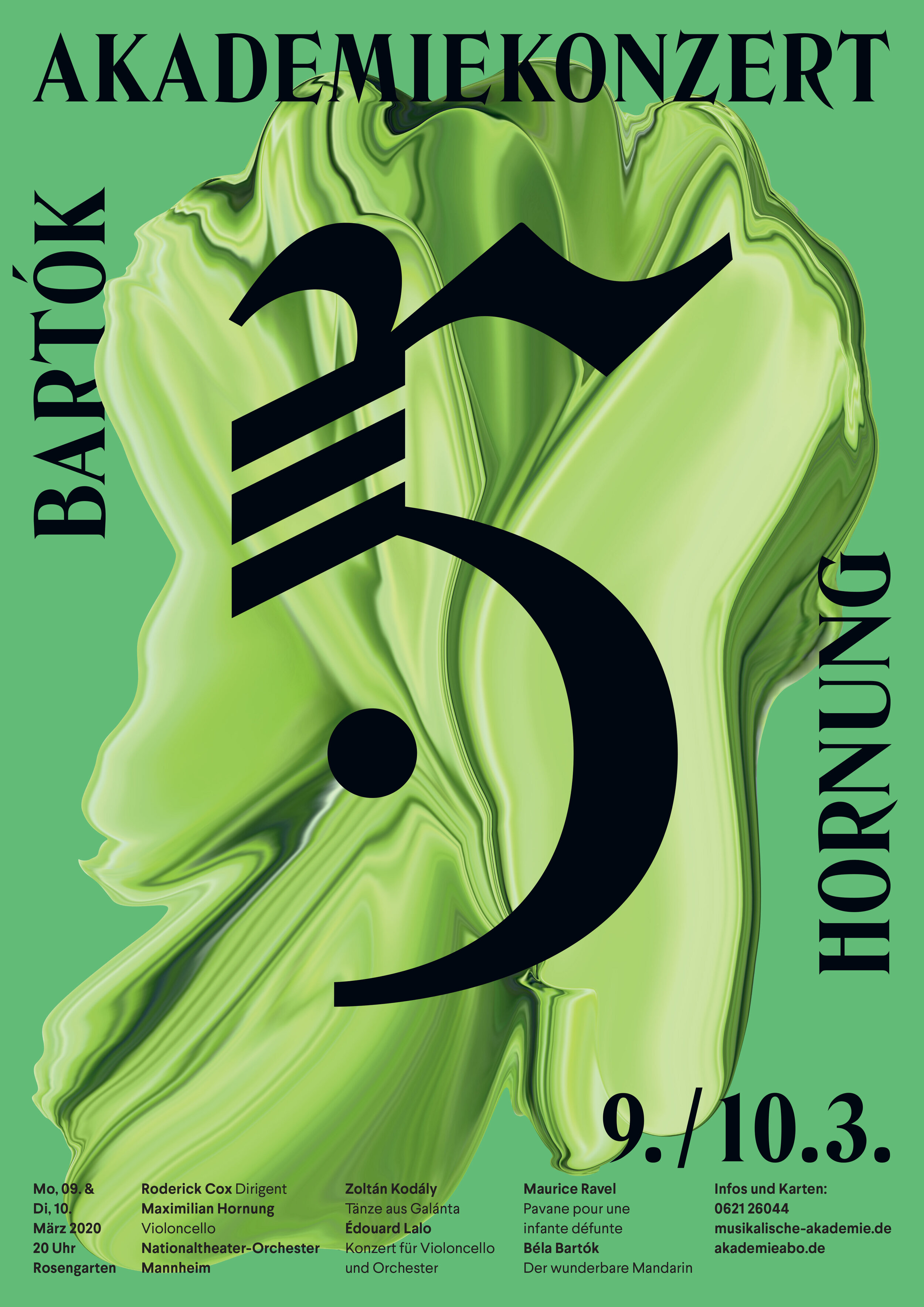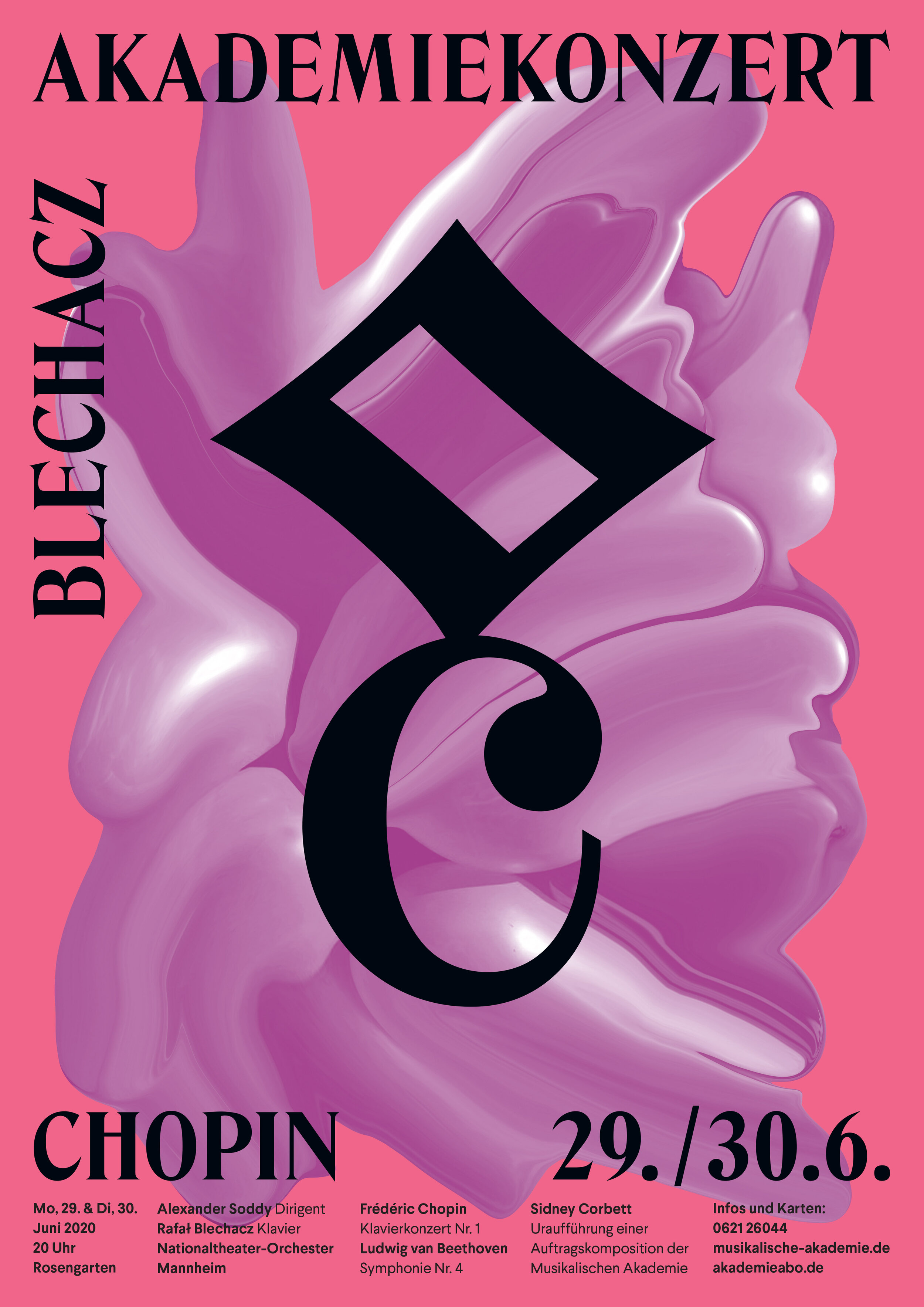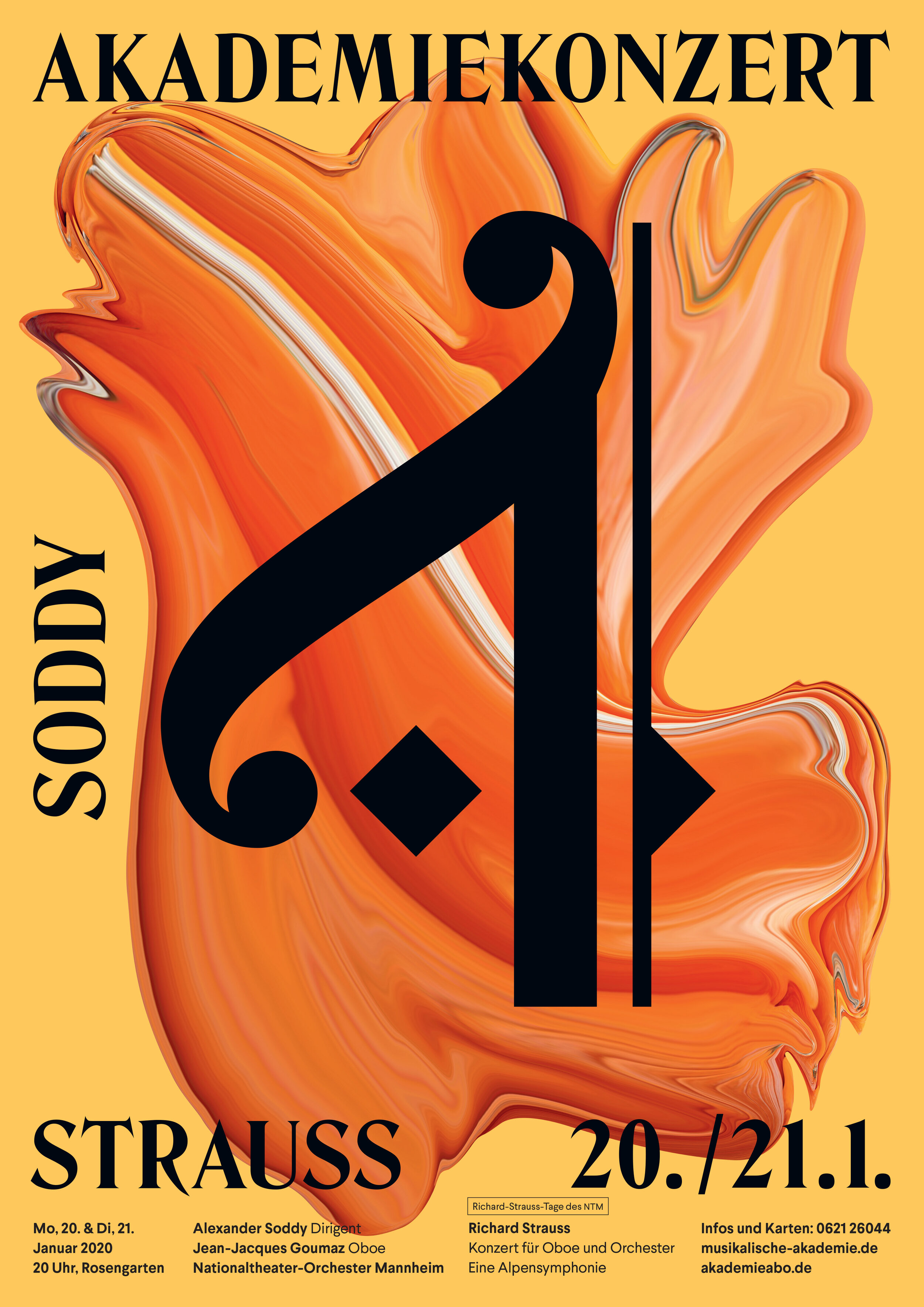 Seasonal design as part of the graphic identity for the classical concerts series Academy Concerts by the Orchestra of the National Theatre Mannheim, season 2019 / 20